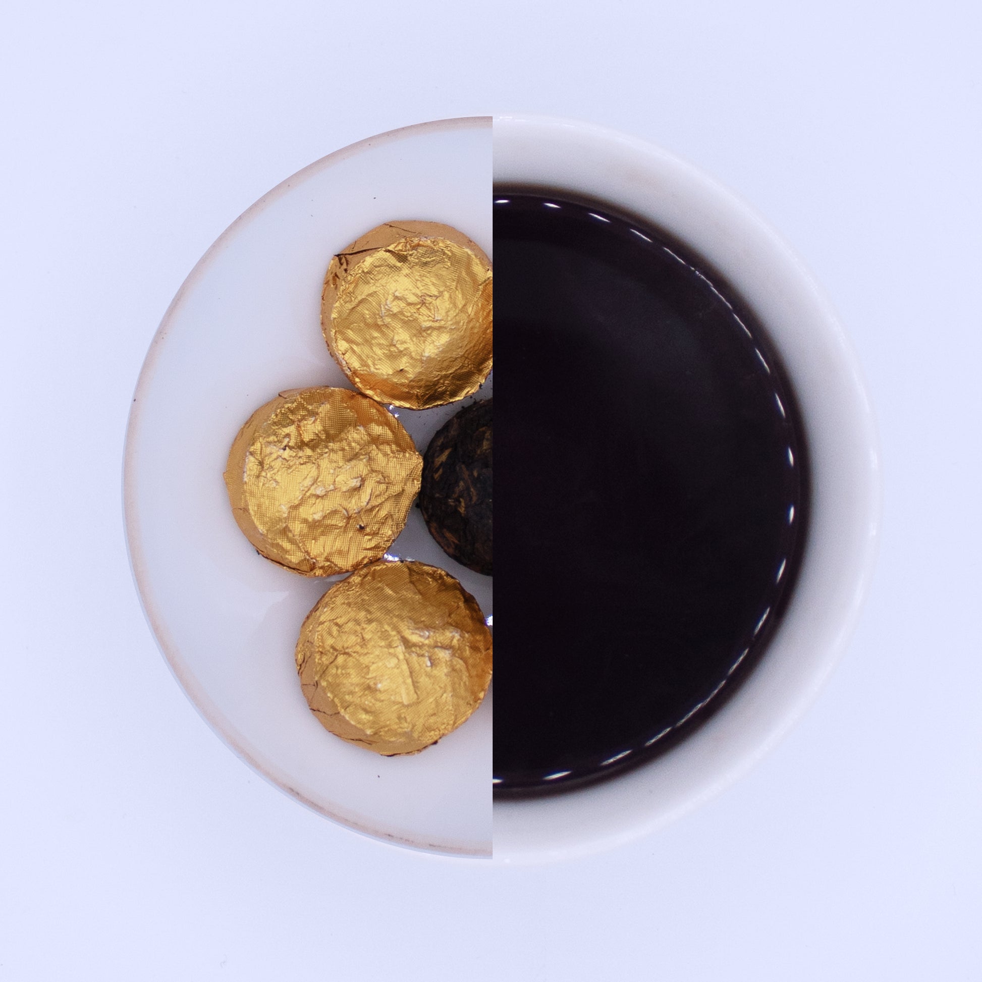 Made using leaves from organically grown tea trees, this tea is processed using a careful post-fermentation method typical of shou (ripe, or cooked) puer. Each piece is pressed into a small, single-serving tuo shaped tea cakes of approximately 5g, making it easy to brew and consistent in taste.