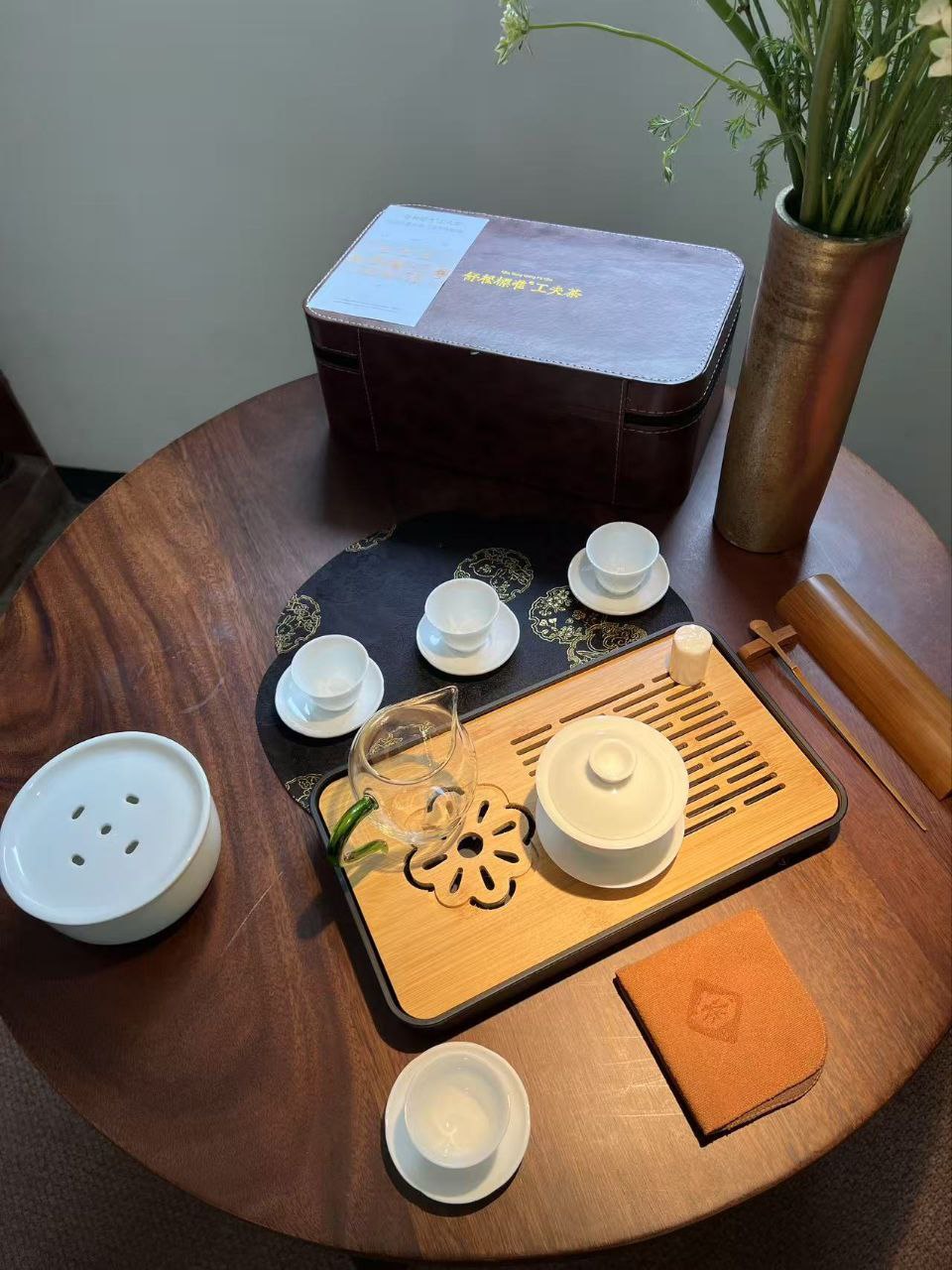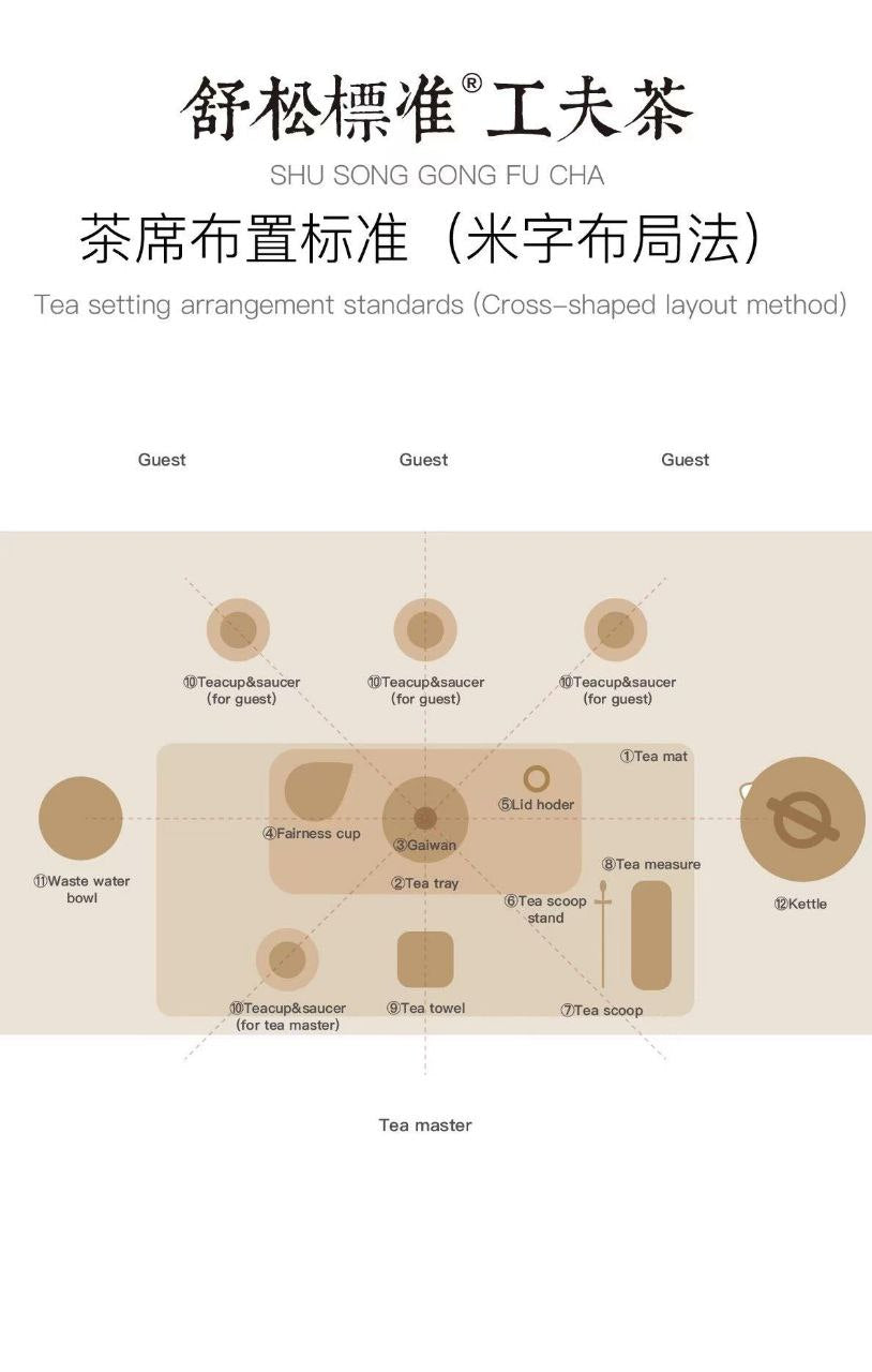 A beautiful 11-piece tea set for practicing the Chinese style of brewing - Gongfu Cha, this portable collection of Gongfu Cha essentials has been carefully designed by Master Shu Song as a set ideal for enjoying tea the Chinese way at home or on the go. The set comes carefully packed in its stylish carry case with Master Shu Song's branding in gold characters. With the Shu Song Standard Gongfu Cha tea set you can savour the moment with good tea just as a Chinese tea master does.